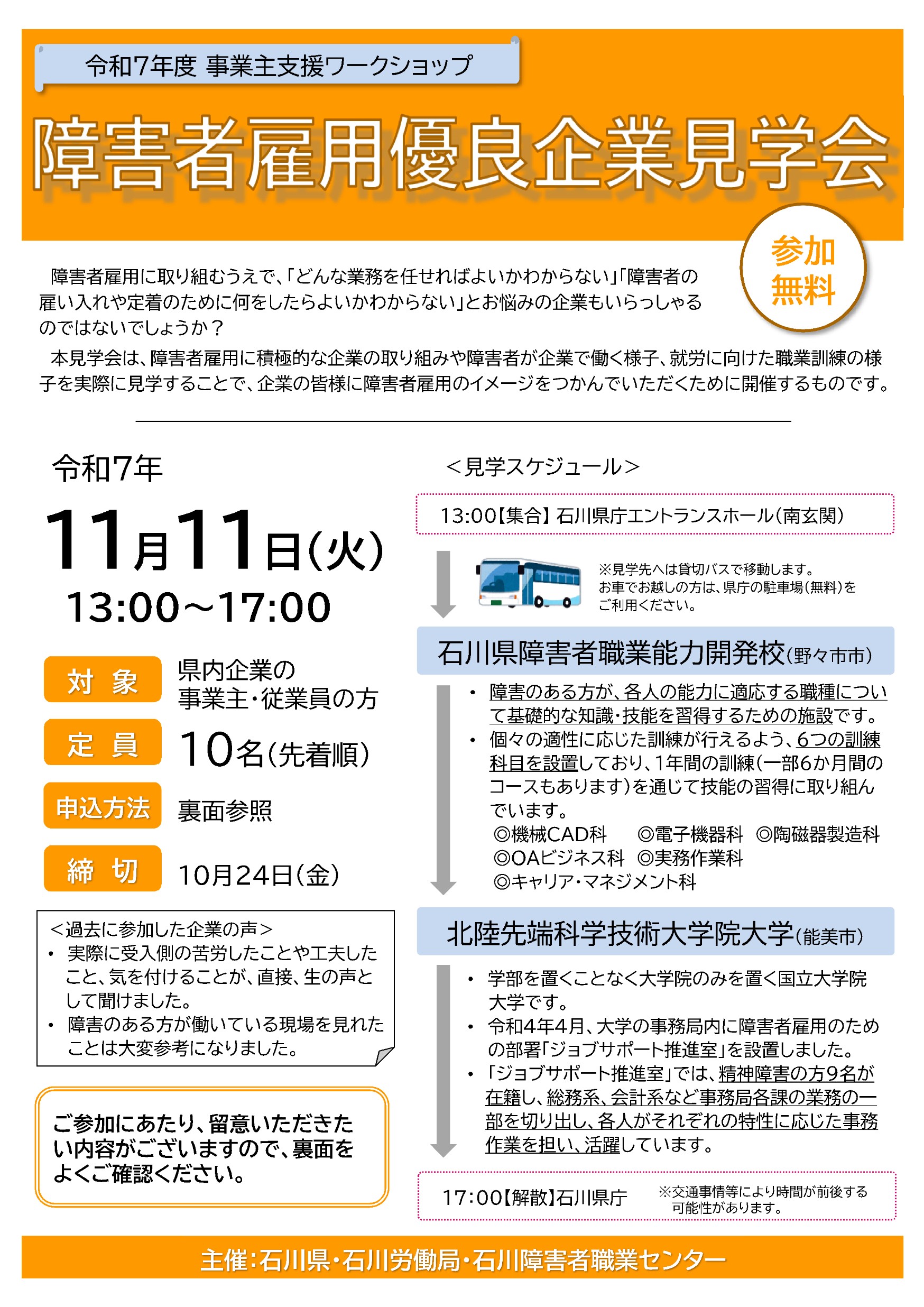 お申込みフォーム:令和7年度事業主支援ワークショップ 障害者雇用優良企業見学会