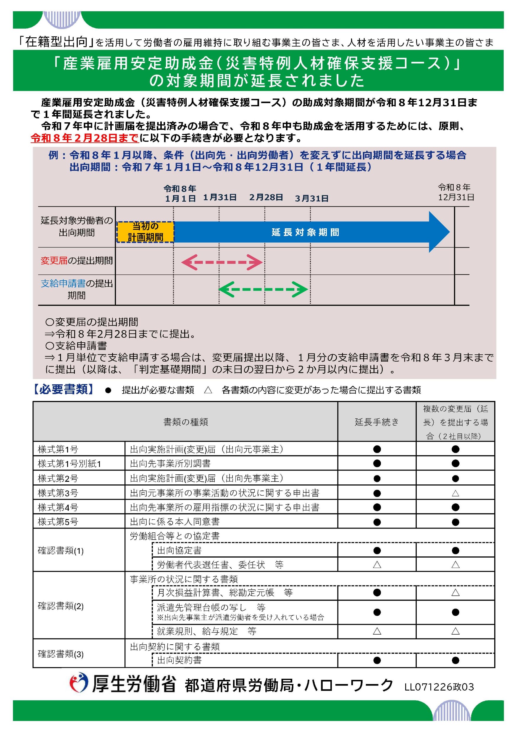 産業雇用安定助成金(災害特例人材確保支援コース)の助成対象期間が令和8年12月31日まで1年間延長されました