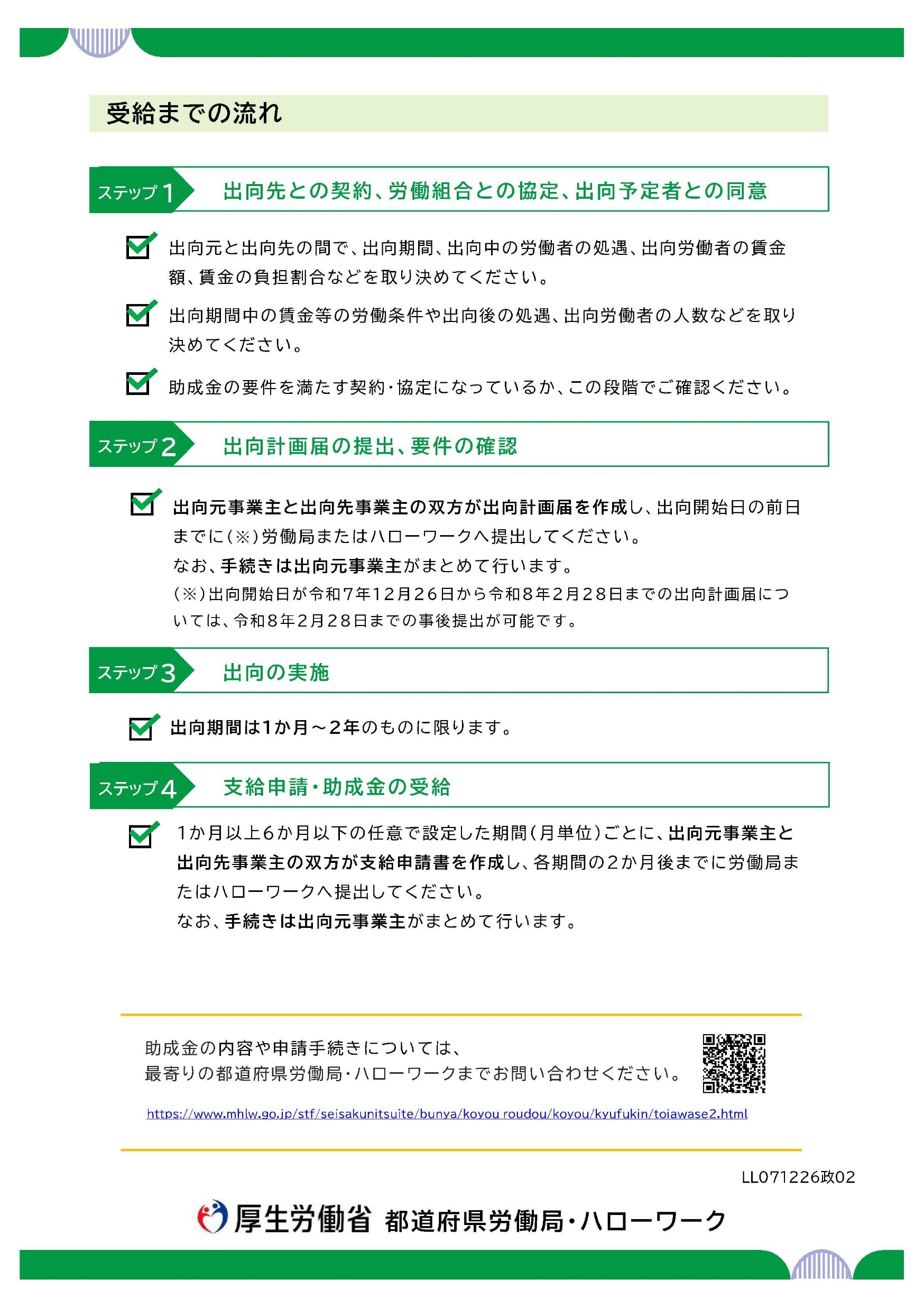 令和7年中に計画届を提出済みの場合で、令和8年中も助成金を活用するためには、原則、令和8年2月28日までに以下の手続きが必要となります。
